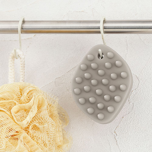 その名のとおり、シャンプーの時などに程よい弾力でしっかり頭皮マッサージをすることができるシリコン製のブラシです。持ちやすさと使いやすさを考えて設計された形状もGOOD!