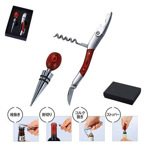 シックで大人な紙箱デザインも高級感あって素敵なワインオープナーセットです。ワインの試飲会などのイベントやキャンペーンにおける、特典や景品用、また贈り物などにもおすすめです。