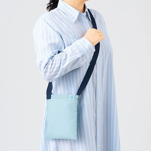 海洋汚染を防ぐために回収された廃プラスチックなどを素材で作れらた、地球環境に優しいサコッシュです。海をイメージした3パターンのカラーバリエーションから選択可能。