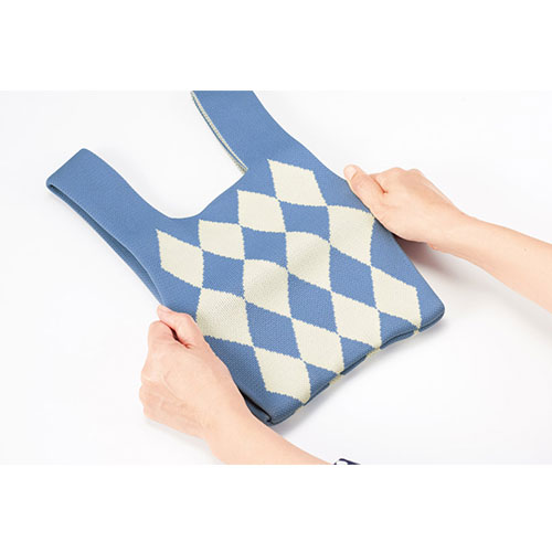 厚手のふんわりニット素材を使用したトートバッグです。ワンハンドルで使うことも可能。見た目もオシャレなアイテムですので、イベント等で配布するノベルティグッズとしてもおすすめ。