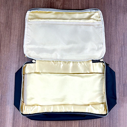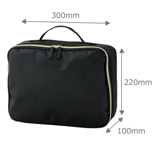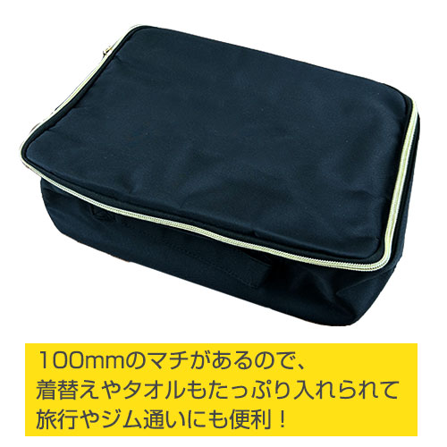 ゴールドのチャックと内側の生地が高級感を醸し出すガーメントケースです。着替えやタオルなどがたっぷり入る収収納力抜群のサイズですのでちょっとした旅行やジム通いにもおすすめ。