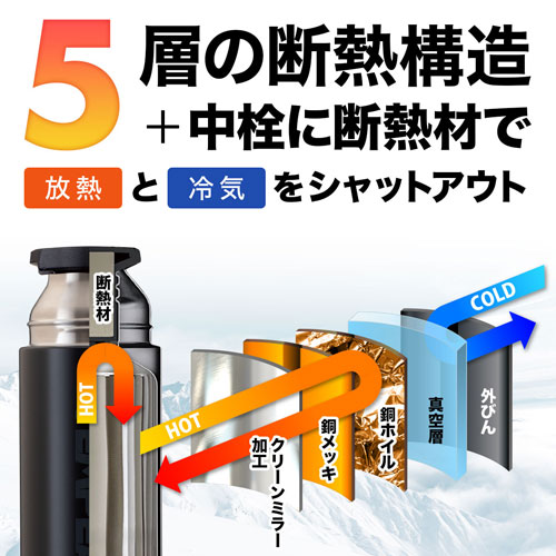 530mlサイズの、5層の断熱構造+断熱材入りのフタで、非常に高い保温力を誇るボトルです。寒い真冬でも熱々の美味しい飲み物をいつでもどこでも楽しめるアイテムです。