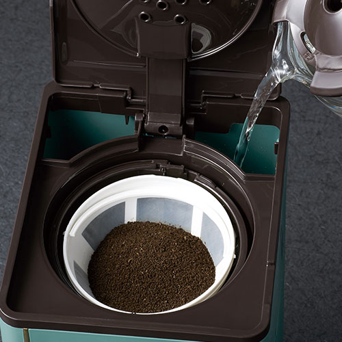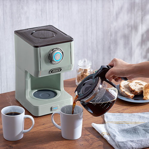 コーヒー粉をじっくり蒸らしながら抽出できるハンドドリップのようなコーヒーメーカーです。メッシュフィルターとガラスポットは水洗い可能。保温プレートで抽出したコーヒーの保温も!