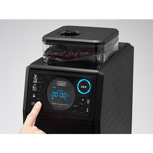 豆の挽き具合は無段階で調整が可能、抽出温度や味わいはそれぞれ3パターンから選択できる全自動のミル付きドリップコーヒーメーカーです。淹れたての美味しい好みのコーヒーを楽しめます。