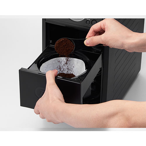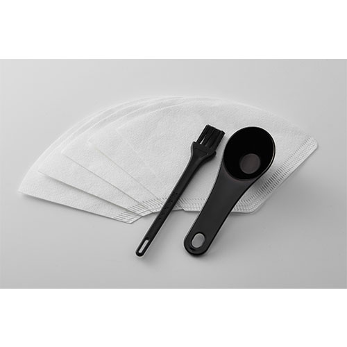 カラー展開 全2色サイズ 約170(W)×430(H)×325(D)mm容量 水タンク容量:650mL重量 約4.6kg機能 電源:AC100V 50-60Hz定格消費電力:980Wミル方式:コーン式抽出方式:ドリップ式コーヒーミル最大容量:120g電源コード長:約0.8m付属品 計量スプーン、掃除用ブラシ、ペーパーフィルター(5枚)、カンタン操作ガイド、ユーザーズガイド(保証書含む)