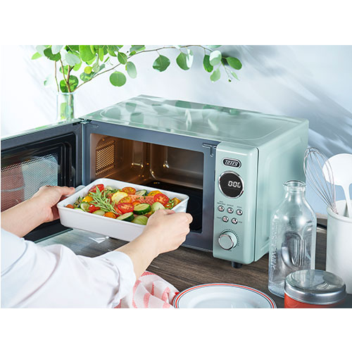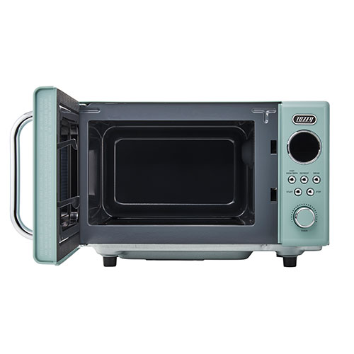 レトロなデザインがとっても可愛らしい電子レンジです。直感的なシンプルな操作が可能な上、消音機能付き。また電源コードも長めに作られているため置く場所の幅が広いのも◎!