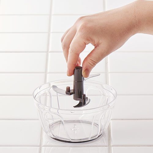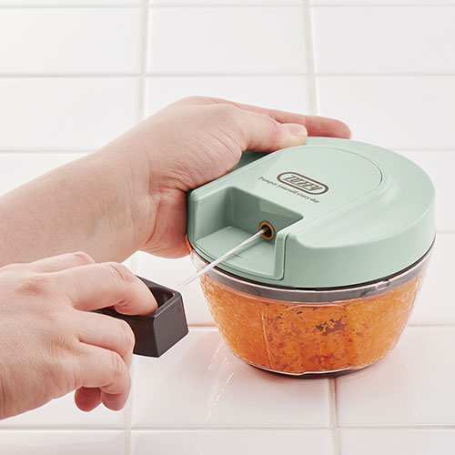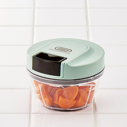 ハンドルを引くだけで中に入れた食材をしっかり刻んでくれる、電源を必要としないハンディチョッパーミニII。薬味をはじめとする様々な食材を、必要な分だけ、手を汚さずに細かくできます。