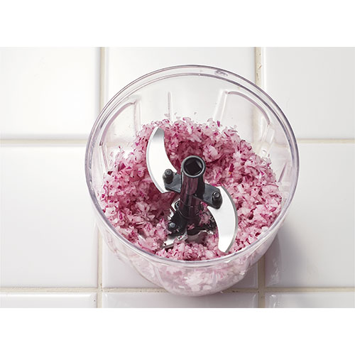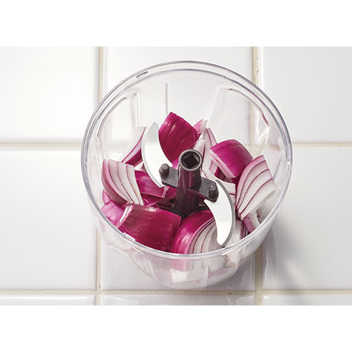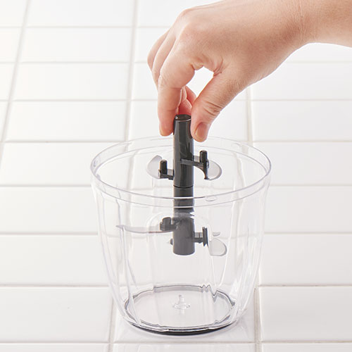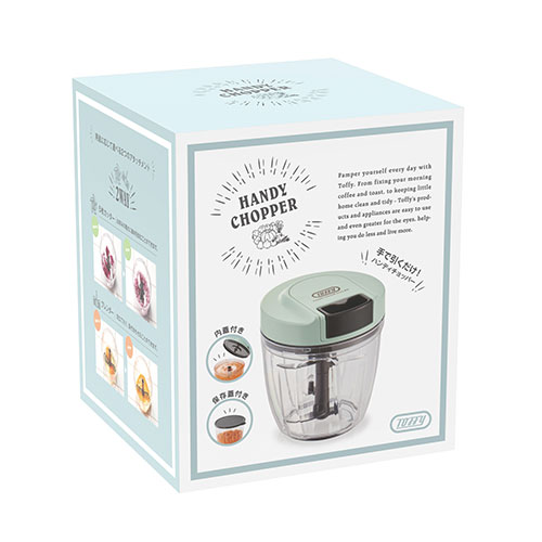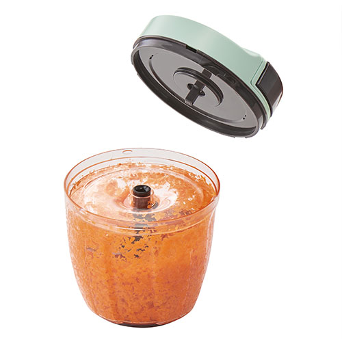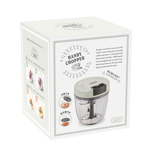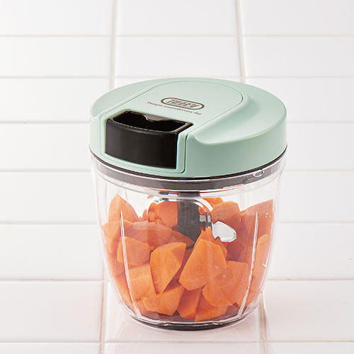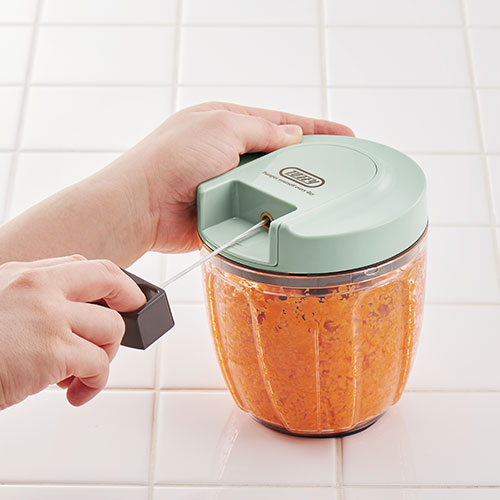 ハンドルを引くだけで中に入れた食材を5枚カッターしっかり刻んでくれる、電源を必要としないハンディチョッパー。様々な食材を、必要な分だけ、手を汚さずに細かくできます。