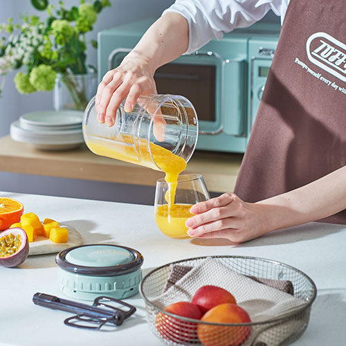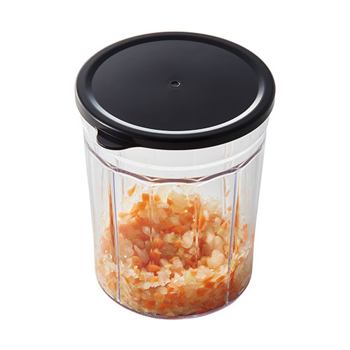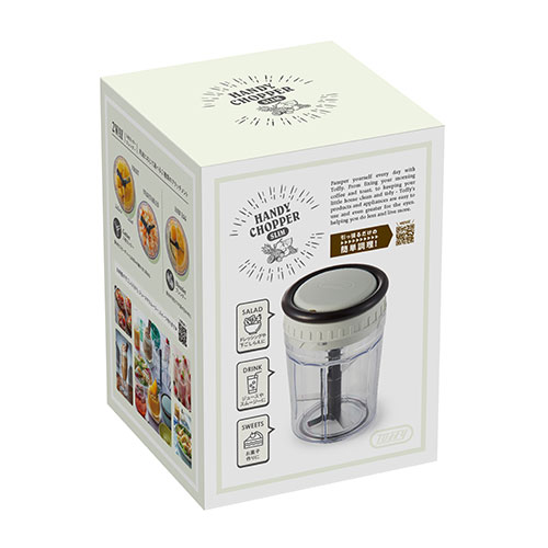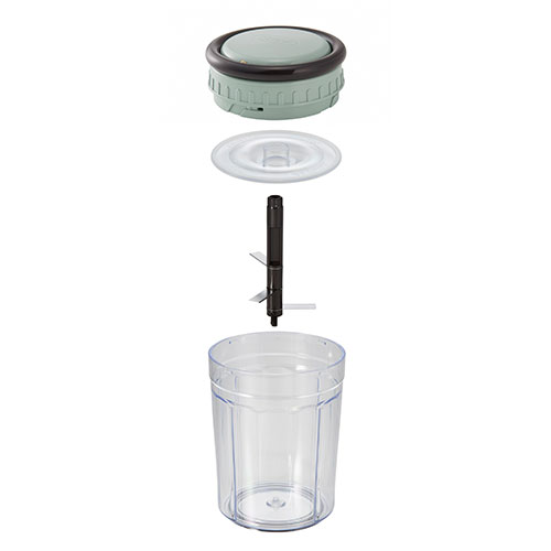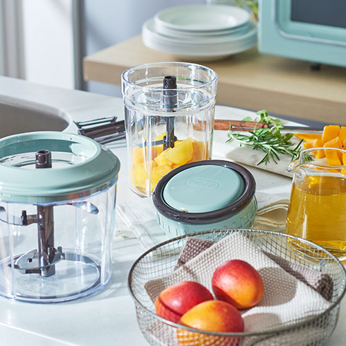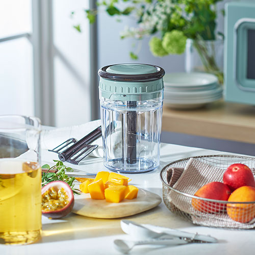 ハンドルを引くだけで中に入れた食材をしっかり刻み、アタッチメントを変えるとブレンダーにもなるハンディチョッパースリム。電源を必要としないため、アウトドアシーンでも活躍できます。
