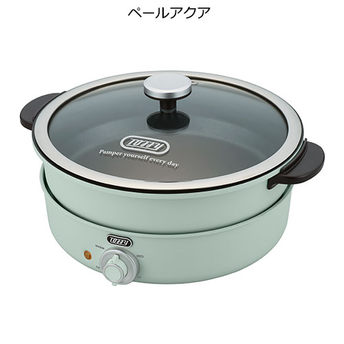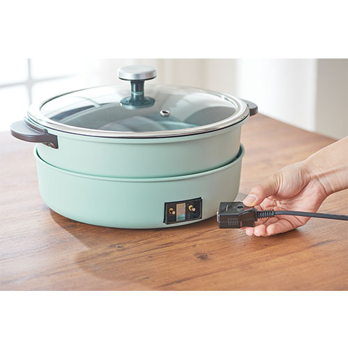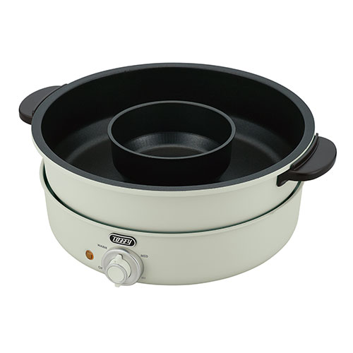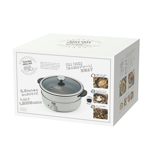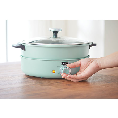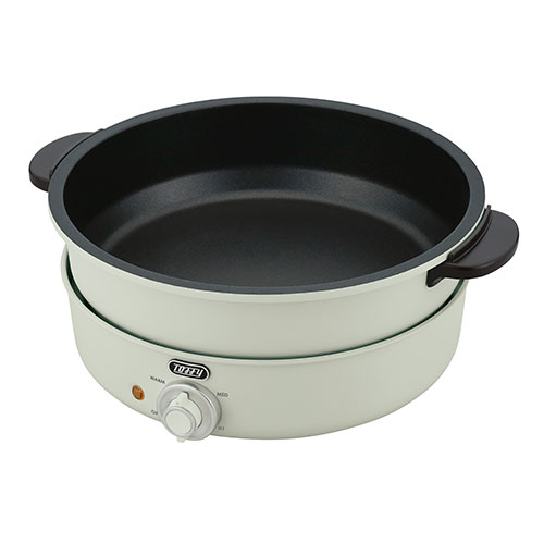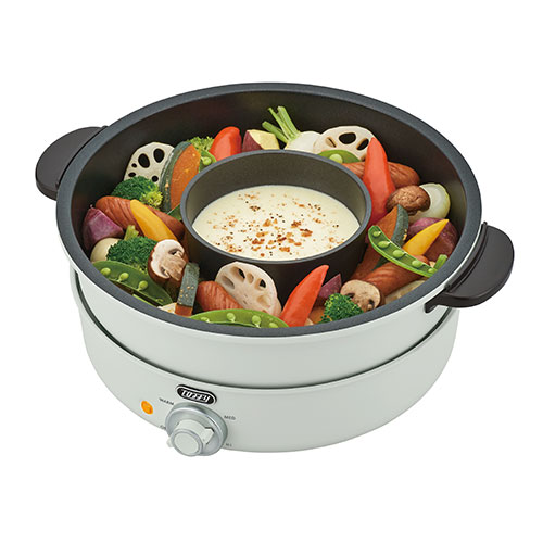 3.5Lのたっぷりサイズで、家族での食卓やホームパーティでも活躍すること間違いなしな電気グリルです。2色鍋が楽しめる内鍋と、みんな大好きたこ焼きプレートが付属します。