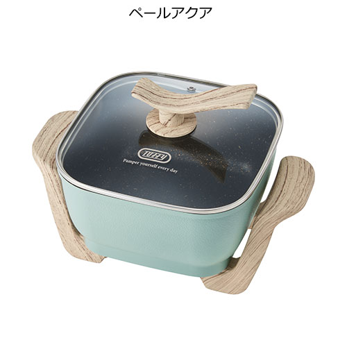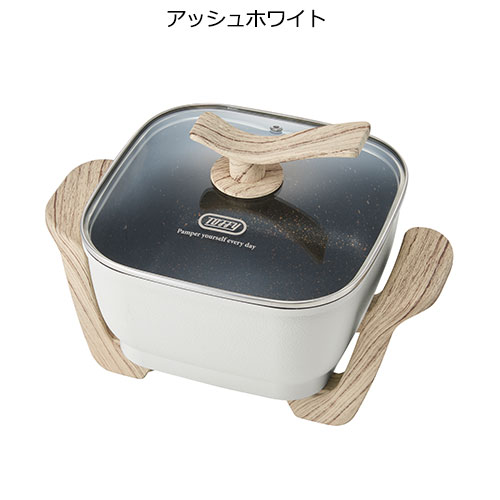 カラー展開 全2色素材 鍋:アルミニウム合金(内面:ふっ素樹脂塗膜加工、外面:焼付け塗装)ガラス蓋:ガラスサイズ 約285(W)×220 (H)×200(D)mm ※ガラス蓋使用時容量 満水容量:2.8L重量 約1,720g ※ガラス蓋使用時機能 電源:AC100V 50-60Hz定格消費電力:1000W電源コード長:約1.2m温度調節:保温〜約230度付属品 ガラス蓋、蒸しプレート、温度調節プラグ、ユーザーズガイド(保証書含む)