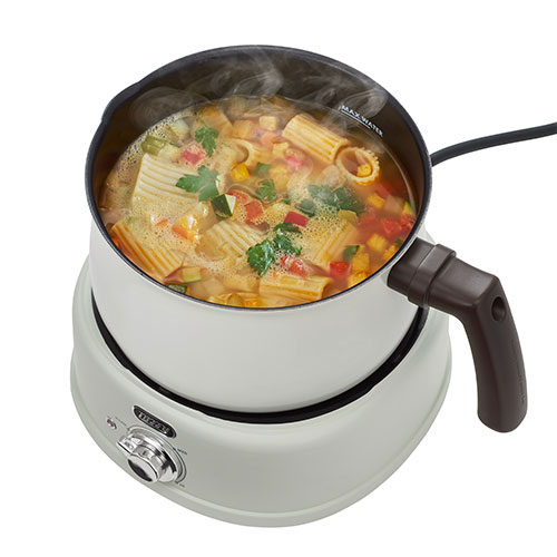最大1.6リットルで、2合のお米が炊ける丁度良いサイズ感の電気マルチポット。火力は保温から240℃まで無段階調整が可能なうえ、上の鍋は直火にも対応。使い勝手抜群のアイテムです。