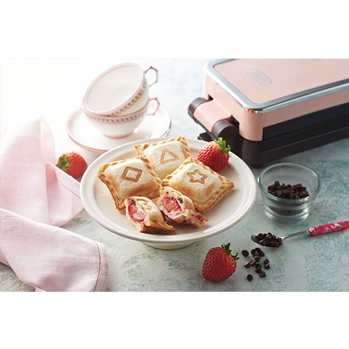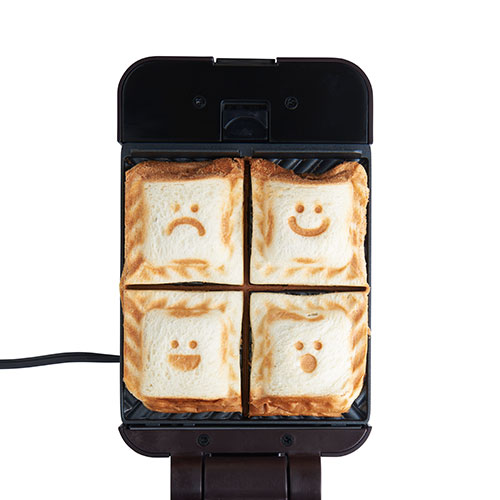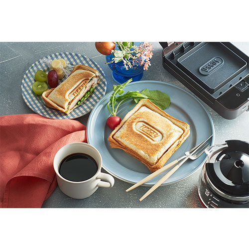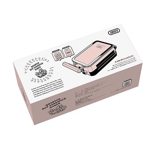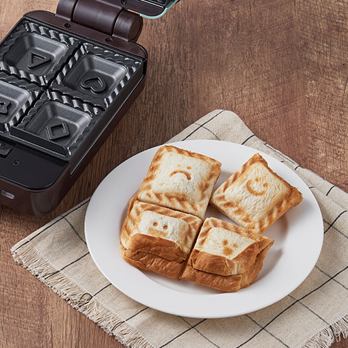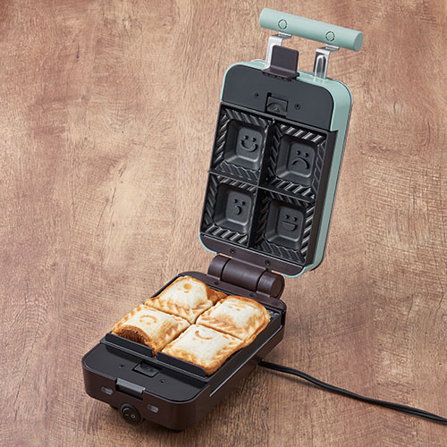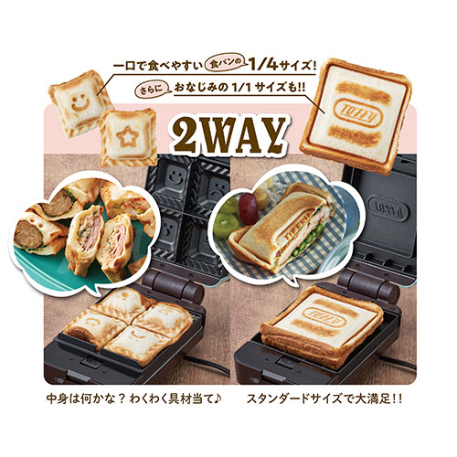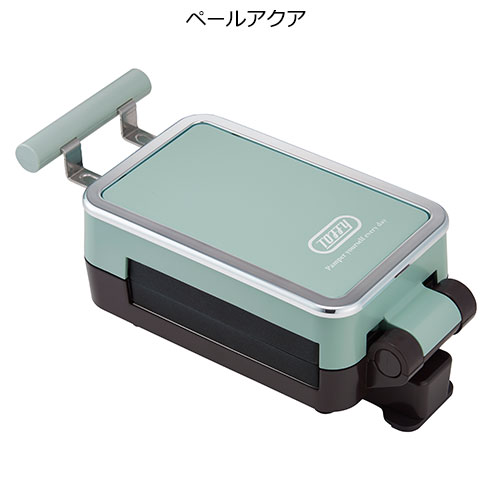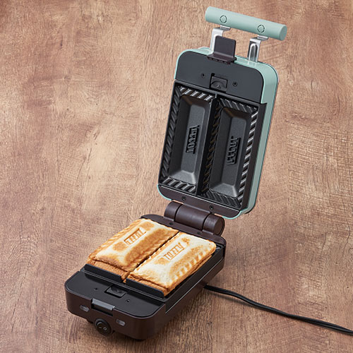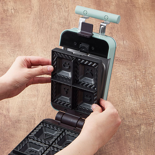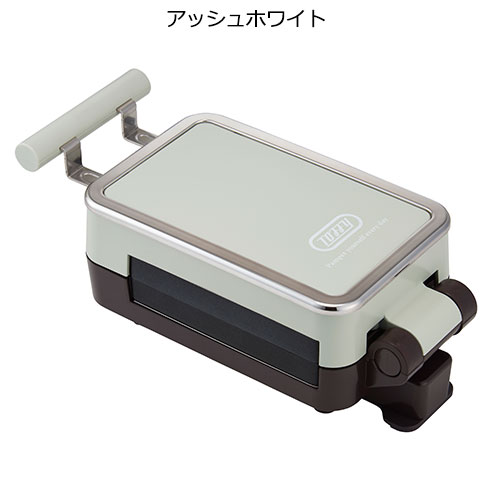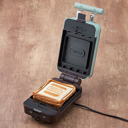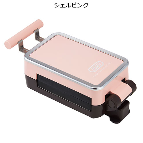 プレート交換式で、食パン1枚分の大きさの通常のホットサンドはもちろん、一枚を四分の一にカットしたミニミニホットサンドも作れるメーカーです。3色のかわいいカラバリから選択可能。