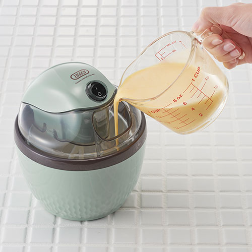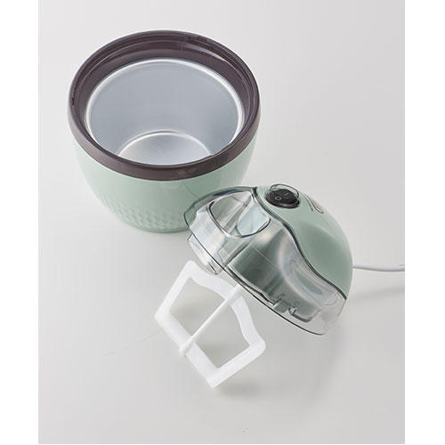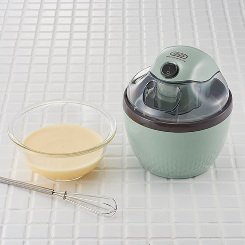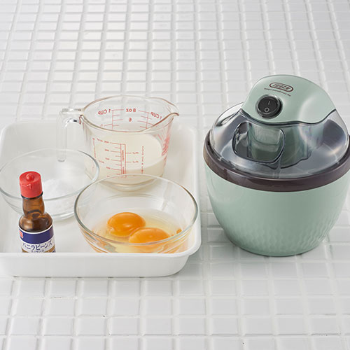 生卵や牛乳やバニラビーンズなどの必要や食材を混ぜ合わせて冷やしたら、保冷ポットに投入してスイッチをオン。すると約15分で美味しいアイスクリームができるお手軽メーカーです。