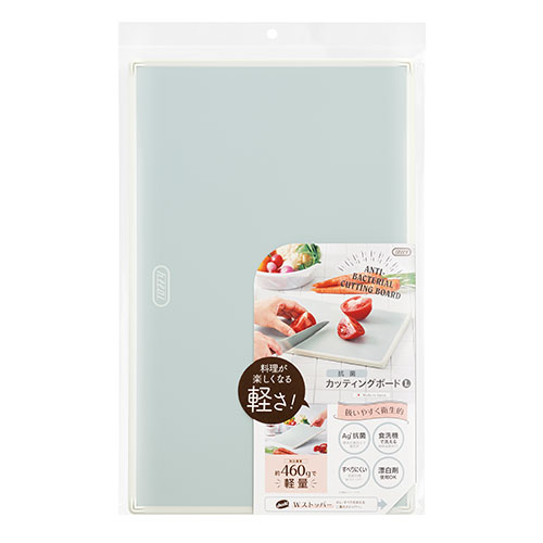 食洗機も漂白剤も対応したLサイズのカッティングボードです。両面四隅にWストッパーがあるため滑りにくく銀系抗菌加工で衛生的に使い続けられます。同型の標準サイズもご用意しております。