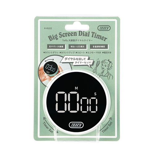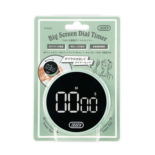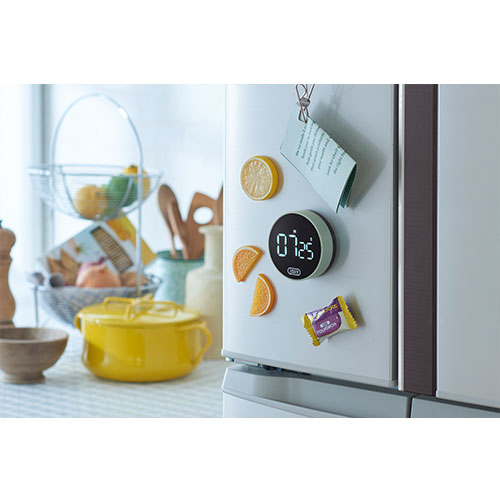ダイヤルを回してToffyロゴのスイッチを押すだけの直感的な簡単操作でカウントダウンがスタートするダイヤルタイマーです。見やすい大画面のLED表示に加え、マグネット貼り付けも可能。