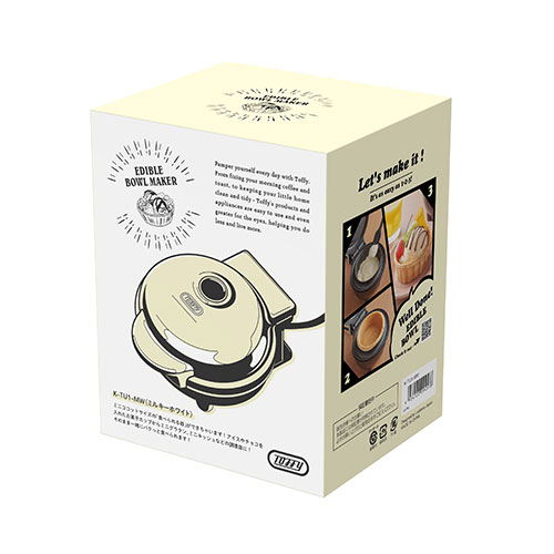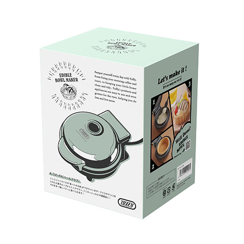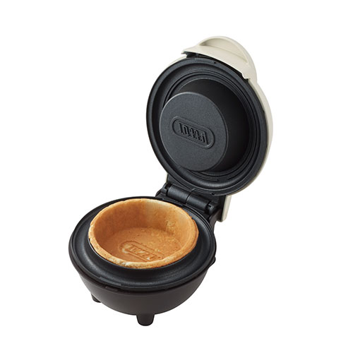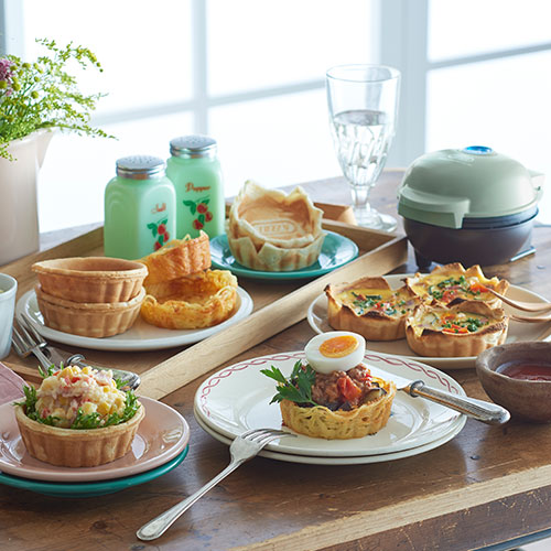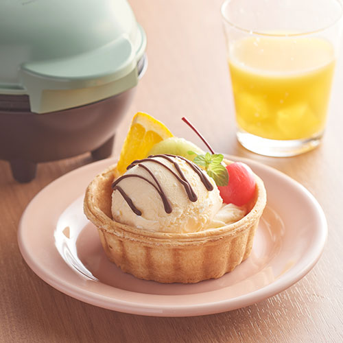 タルト生地はもちろん、食パンでも、お餅でも、パスタや餃子の皮でも、食べられる器が作れるメーカーです。アイスなどの器はもちろん、ミニグランやミニキッシュなどにも最適です。