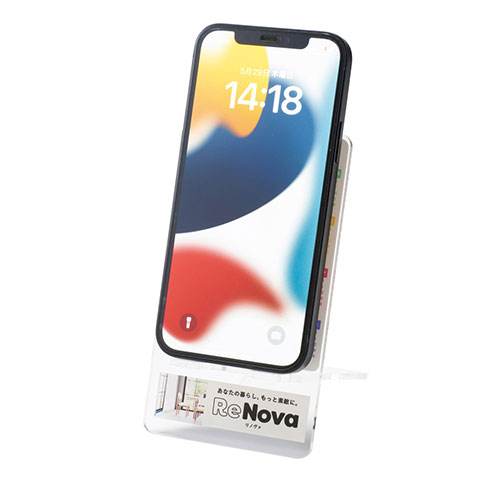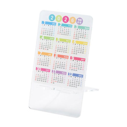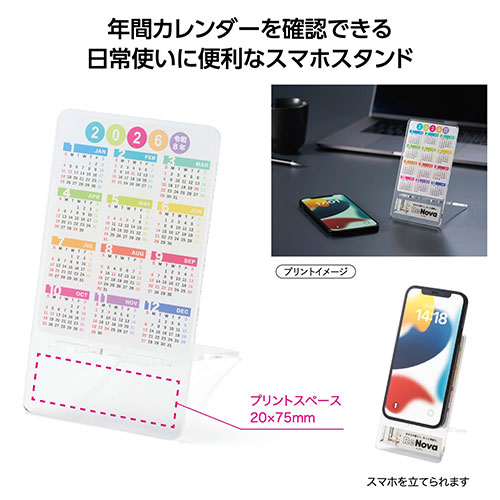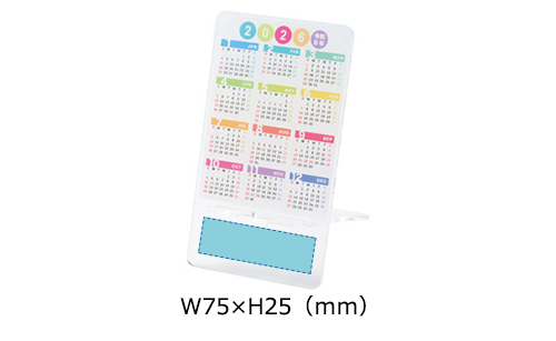 カラフルで見やすい卓上カレンダーですが、スマホスタンドとしても利用できる優れモノ!下部にオリジナルデザインの名入れプリントが可能なため、販促アイテムとしてもおすすめ。