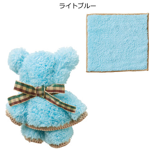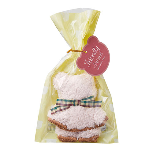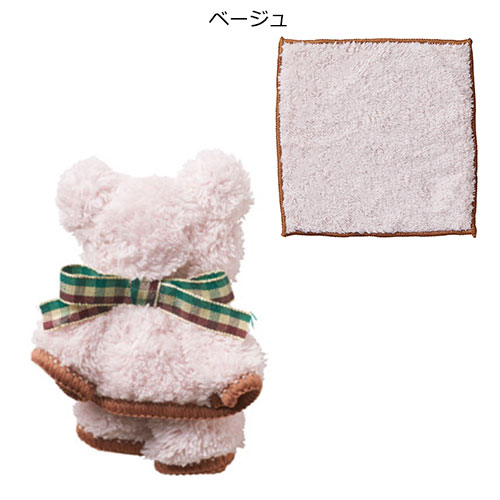 まるでクマのぬいぐるみのようなパッケージが、見た目にもとっても可愛らしいハンカチタオルです。ベージュ、ブラウン、ライトブルーの三色アソート。景品や特典用などにおすすめです。