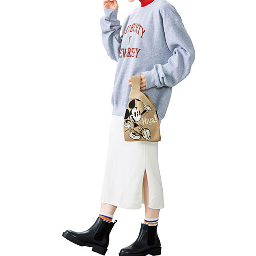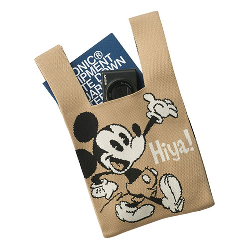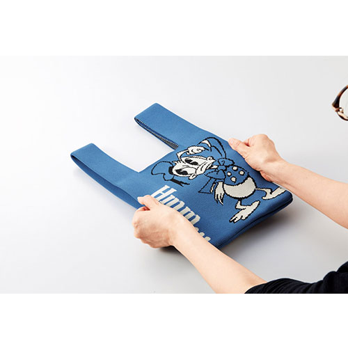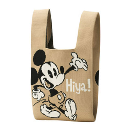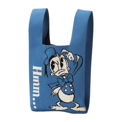 ミッキーマウスやドナルドダックのかわいいキャラクターが大胆に大きくプリントされたニットバッグです。厚手のざっくりとした質感で耐久性にも優れており、実用的でもあるアイテムです。