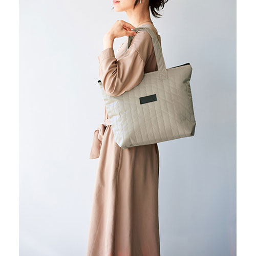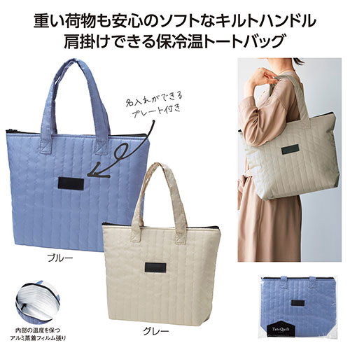 キルティングのステッチが縦に入っているため、シンプルながらもスタイリッシュな保冷温バッグです。持ち手が長めに作られているため肩掛けもできて、お買い物用としても非常に便利です。