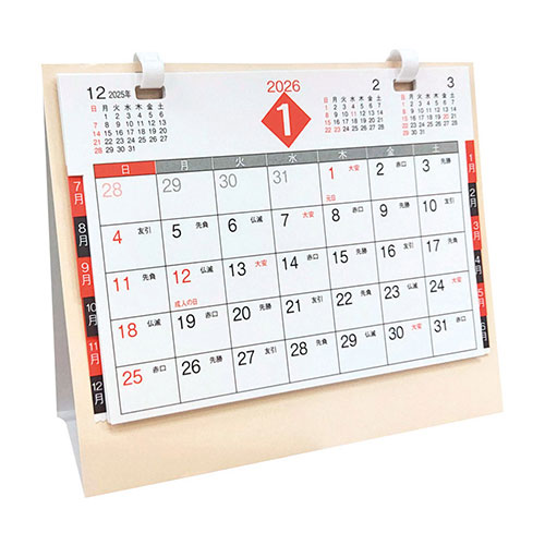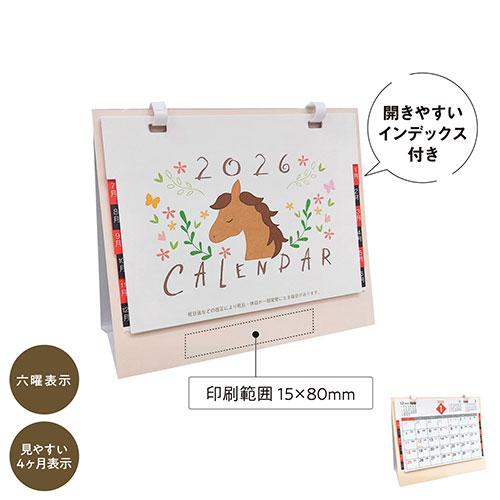 2026年の干支である午デザインがとっても可愛らしくて癒やされる卓上カレンダーです。見やすい4ヶ月表示ですぐに予定確認が可能な上、六曜表示も。オリジナルの名入れプリント可能です。