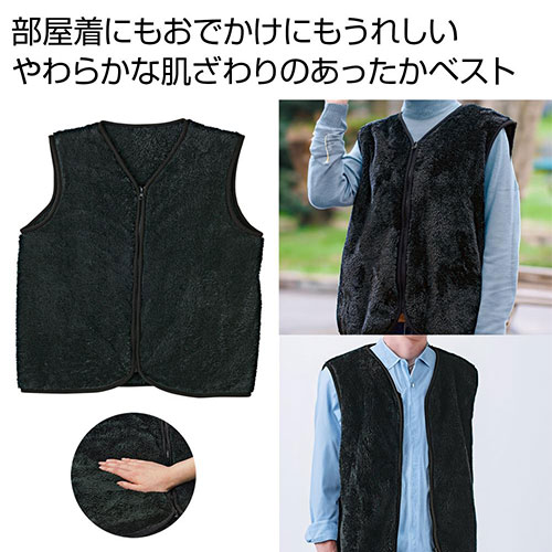 肌寒い日にさっと羽織るだけであたたかい、ボリューミーでふわふわなボアベストです。ちょっとした外出や庭仕事、部屋着としてはもちろん、寒い冬にはインナーとしても活躍します。