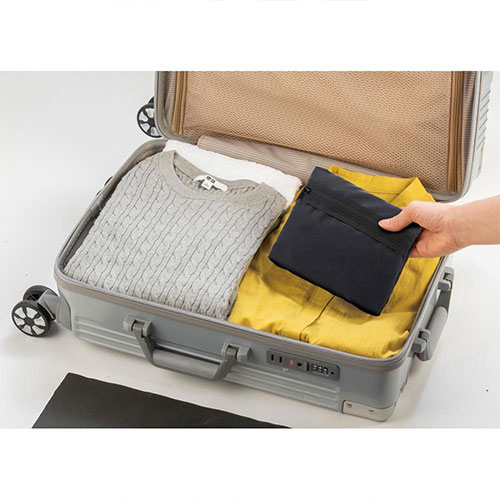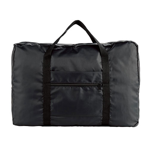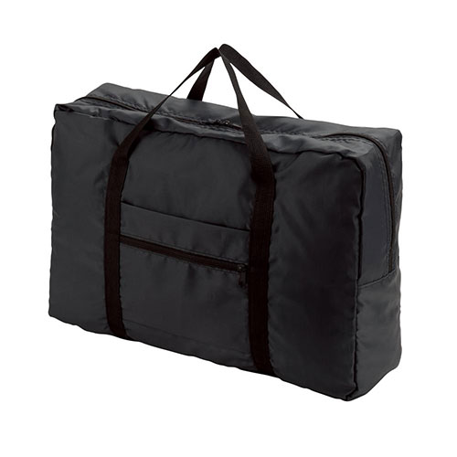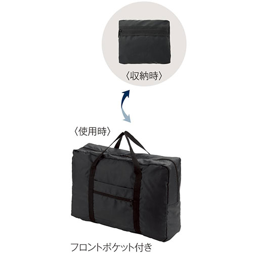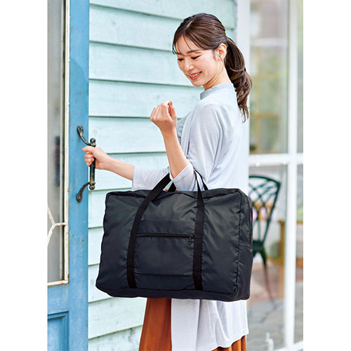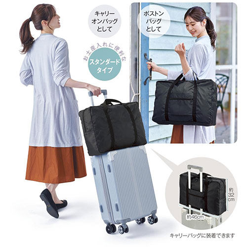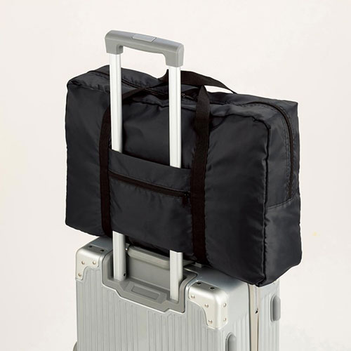 旅行や出張、帰省の際に便利な、スーツケースのハンドルに装着できる折りたたみ式のボストンバッグです。名入れも映えるシンプルなオールブラックのデザインも高ポイントです。