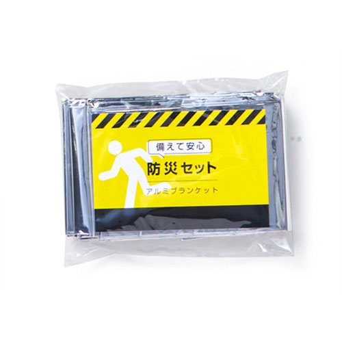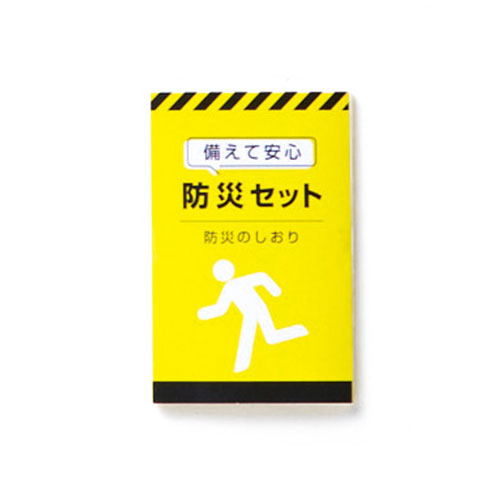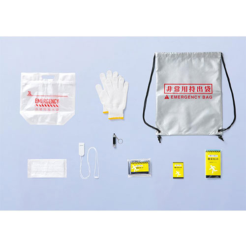 素材 持出袋/ポリエステル アルミシート/アルミニウム・ポリエチレンテレフタレート ホイッスル/ポリスチレン マスク/不織布(ポリプロピレン) 防災のしおり/紙 給水袋(3L)/PET・ポリアミド・ポリエチレン ミニライト/アルミニウム・ABS樹脂・PVC・鉄 ボタン電池LR44 3個付属 携帯トイレ/ポリエチレン・不織布・高分子吸収剤 軍手/綿・ポリエステルサイズ 持出袋/約33×44cm アルミシート/約180×105cm ホイッスル/全長約7cm マスク/約17.4×9.5cm 防災のしおり/約27.5×8.5cm 給水袋(3L)/約29.3×27.8×14cm ミニライト/直径約1.5cm 高さ6.8cm 携帯トイレ/約8.5×14.5cm 軍手/全長約21cm(フリーサイズ)付属品 <セット内容> 持出袋×1 アルミシート×1 ホイッスル×1 マスク×1 防災のしおり×1 給水袋(3L)×1 ミニライト×1 携帯トイレ×1 軍手×1双包装 化粧箱入り