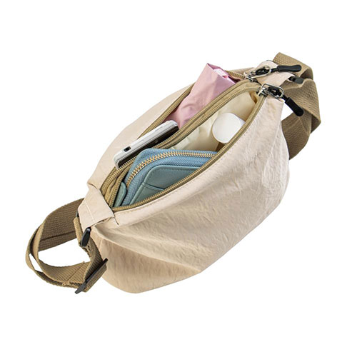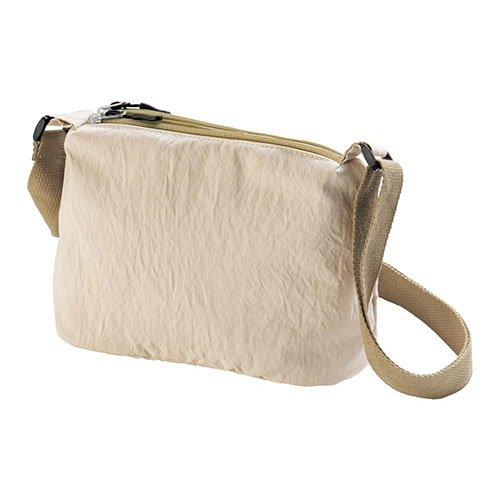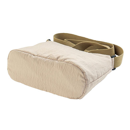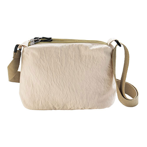 マチ付きで使いやすい2つのポケットが付いたサコッシュです。バッグの中の荷物が迷子になりにくく、さっと取り出せます。ナチュラルなベーシックカラーで、普段使いにぴったりです。