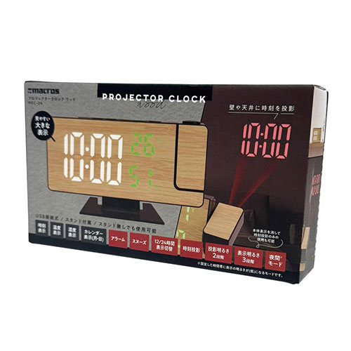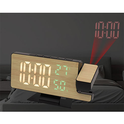 好きな角度に投影できるプロジェクター付きの置き時計です。天井や壁に映し出された時刻は大きく見やすく、眠いときでも瞬時に時間が確認できます。プロジェクターのみで使うこともできます。