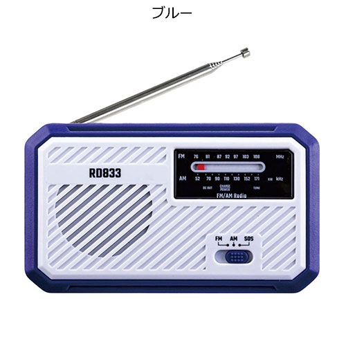 災害時に役立つ4WAY充電式の多機能防災ラジオ。LEDライト、モバイルバッテリー機能搭載。手回し、ソーラー、USB蓄電、乾電池の4通りの方法で充電が可能で災害時にも安心です。