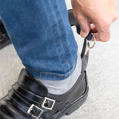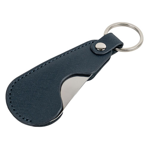 皮革製品製造時に出る未利用端材を再加工した、環境にやさしくエコな靴べらです。バッグやポーチに入れて携帯しやすく、便利なリング付きでキーホルダーとしても使用できます。