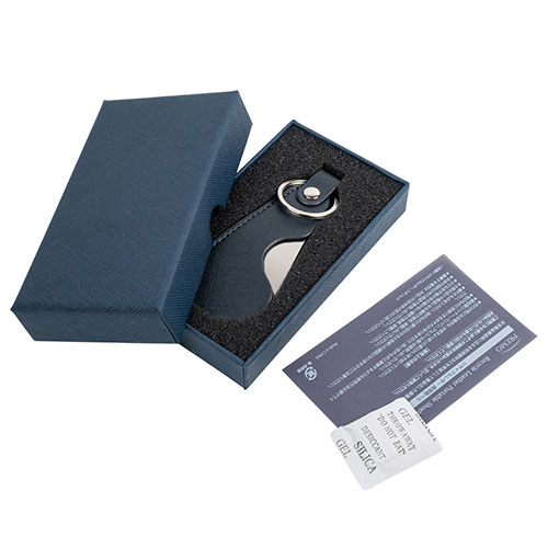 素材 リサイクルレザー、ステンレスサイズ W124×D10×H47mm(リング含む)重量 約68g包装 化粧箱:W132×D74×H25mm