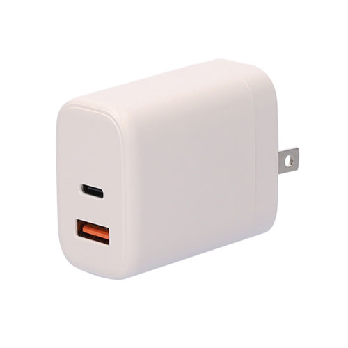 電源プラグを本体に折り畳んで収納できる、携帯用に最適な2ポートアダプター(45W)。100V-240V電圧対応で海外旅行にも最適!各種ノベルティや物販品としてご活用ください。