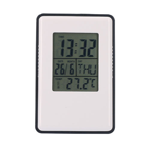 デスクにあると便利!見やすいデジタル表示の多機能クロック。無駄をそぎ落とした、シンプルなデザインで、どんな雰囲気のインテリアともマッチします。各種ノベルティにご活用ください。