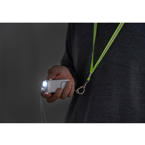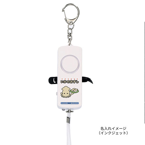 防犯ブザーと夜道を照らすライトとがひとつになった心強い防犯アイテム。オリジナルデザインの名入れ印刷もフルカラーOKなので、防犯関連のキャンペーン用ノベルティグッズにおすすめです。