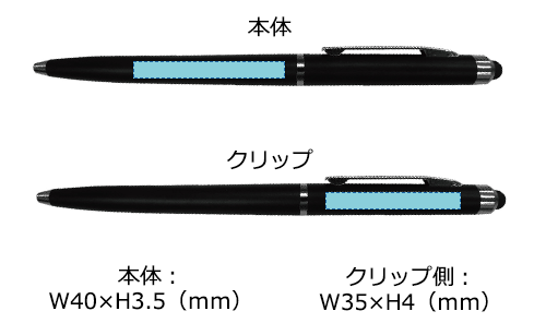 黒とシルバーのコントラストが洗練された雰囲気を醸し出すスタイリッシュなスリムボールペンです。頭はタッチペン仕様となっており、スマホやタブレット操作にも活用できて便利です。