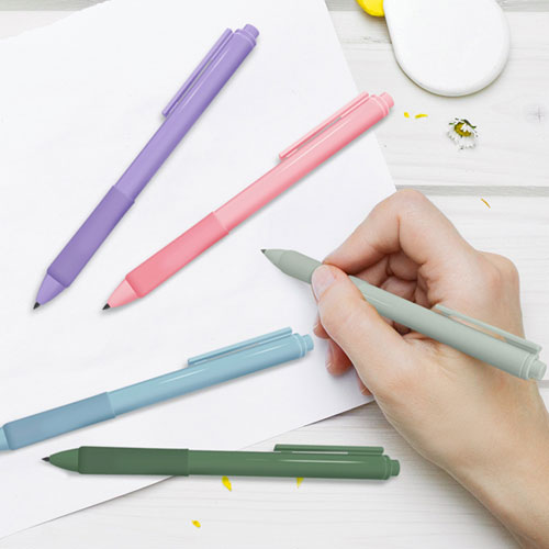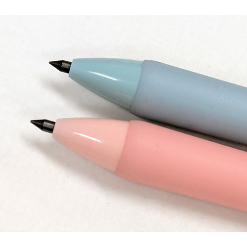 削る必要がない、革新的なノック式ペンシル。ペン先に特殊な合金芯を採用しており、紙との摩擦でわずかに摩耗しながら筆跡を残すため、非常に長く書き続けられます。ノベルティ用に最適!