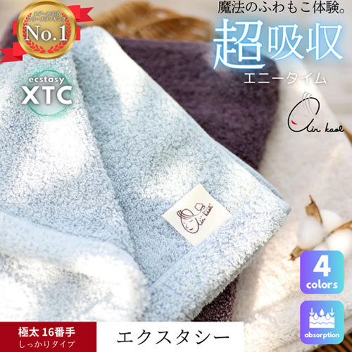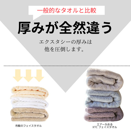 約34×120cmとバスタオル半分サイズの、エクスタシーシリーズタオル。驚きの吸水性と、ボリューム感のあるふわふわもこもこの手触りが癖になるアイテムです。ノベルティ用等にもおすすめ。