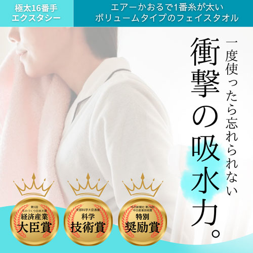 約60×120cmサイズの、エクスタシーシリーズのバスタオル。驚きの吸水性と、ボリューム感のあるふわふわもこもこの手触りが癖になるアイテムです。ノベルティ用等にもおすすめです。
