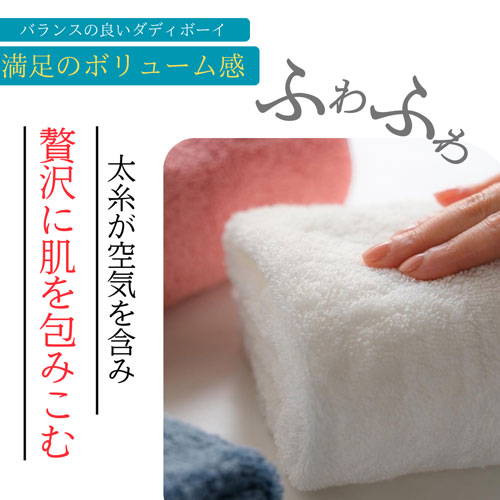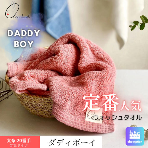 非常に柔らかいフワっとした手触りで、軽いのに吸水力も高く、またお洗濯後の渇きも早くて使いやすいダディボーイシリーズのウォッシュタオル。全3色展開の中からお選びください。