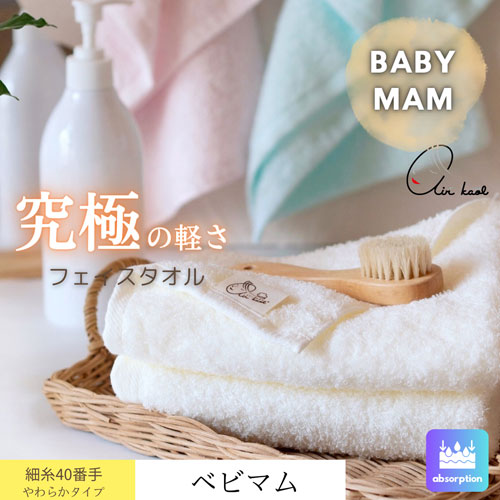 乳幼児の敏感肌にも安心して使用できる、ふんわりとした繊細な肌触りが嬉しい、ベビマムシリーズのフェイスタオルです。優しい色合いのカラーバリエーションは全3色展開です。