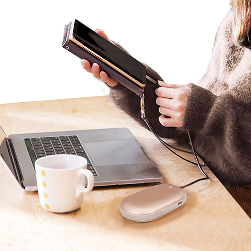 USB充電式で繰り返し使える、コンパクトな2WAYアイテム。 寒い日はカイロとして、緊急時にはモバイルバッテリーとして活躍します。冬の外出時や旅行の必携品です。