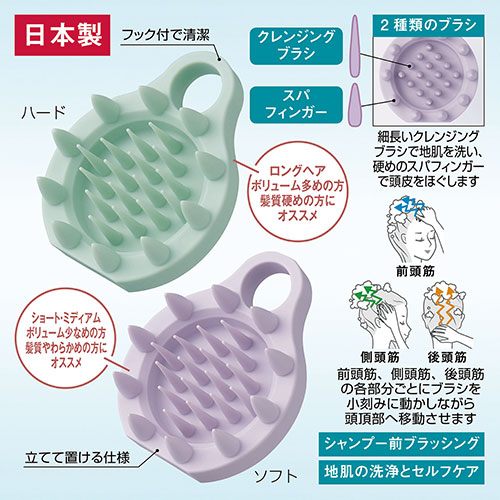 女性も握りやすいサイズで、しっかり手にフィット。太さの異なる2種類のピンが、洗髪と心地よい頭皮ケアを実現します。毎日のシャンプーを癒やしのリラックスタイムにおすすめです。