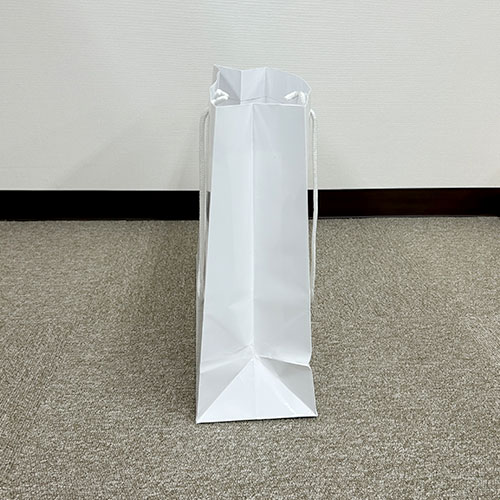 カラー展開 全2色素材 コート紙+PP貼、アクリルスピンドル紐サイズ 本体/W450×H310×D120mm 持ち手/約580mm容量 約16L重量 約143g備考 底ボール入