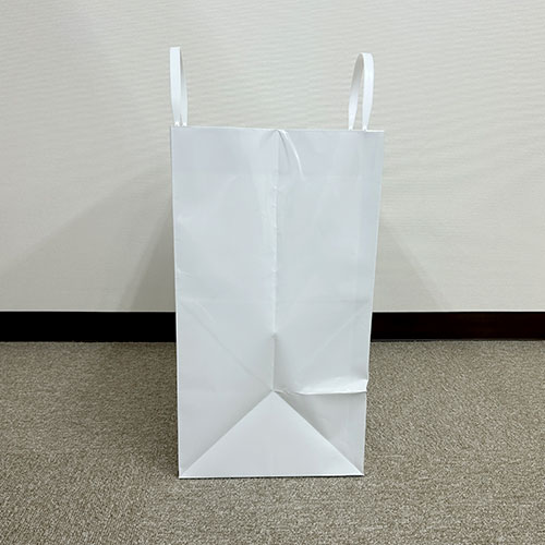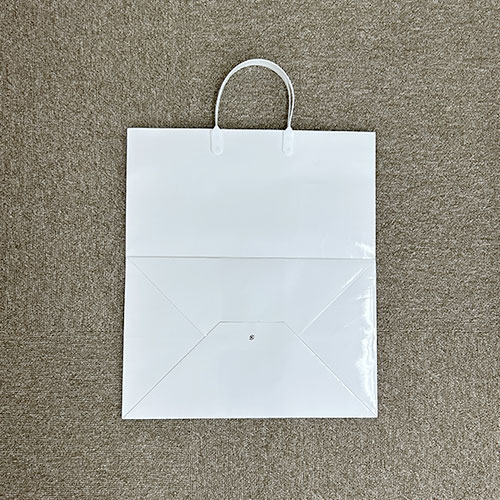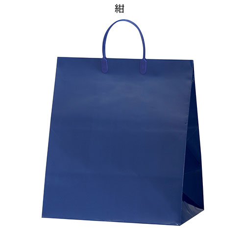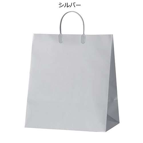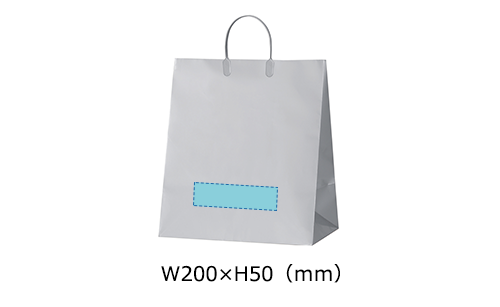 W32×H40×D22の、マチが広いワイドバッグ。素材はコート紙+PP貼で光沢感があり、高級感のある見た目が特徴です。すっきりとしたアイテムでオリジナル名入れがよく映えます。