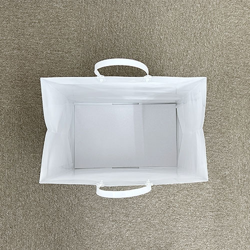 カラー展開 全3色素材 コート紙+PP貼、ハッピータックサイズ 本体/W350×H400×D220mm 持ち手/約250mm容量 約30L重量 約170g備考 底ボール入