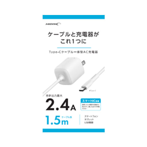 HIDISC Type-Cケーブル一体型AC充電器 ケーブルと充電器がこれ1つに