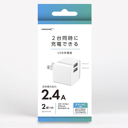 HIDISC 2台同時に充電できるUSB充電器 USB-A x2 ポート